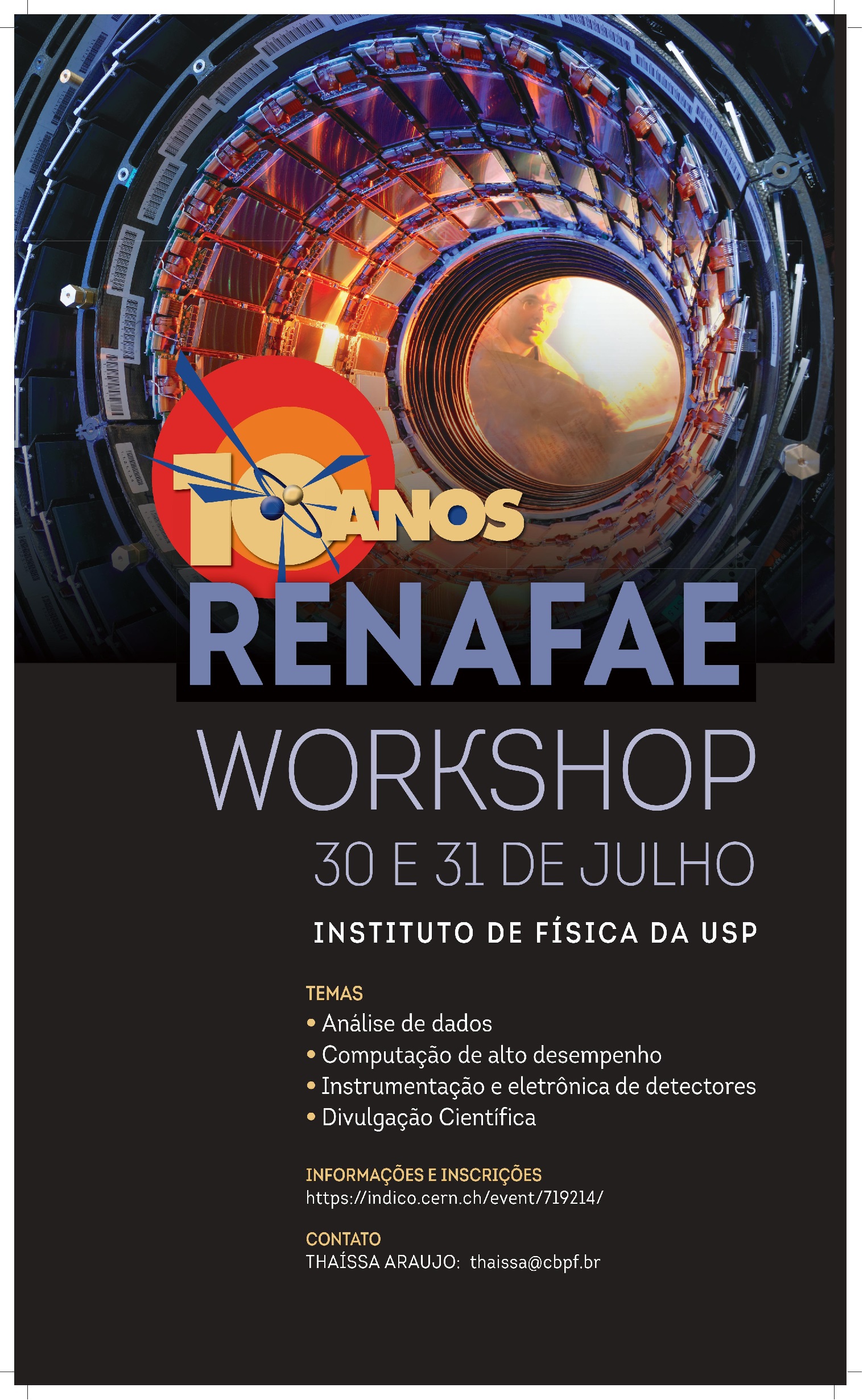Nos dias 30 e 31 de julho de 2018, ocorrerá no Instituto de Física da Universidade de São Paulo, o workshop comemorativo de dez anos da RENAFAE (Rede Nacional de Física de Altas Energias). O objetivo desta edição é contarmos com apresentações em vários aspectos da física de altas energias - análise de dados, instrumentação, computação e divulgação científica - permitindo se obter um amplo cenário do estado da arte nessas áreas.